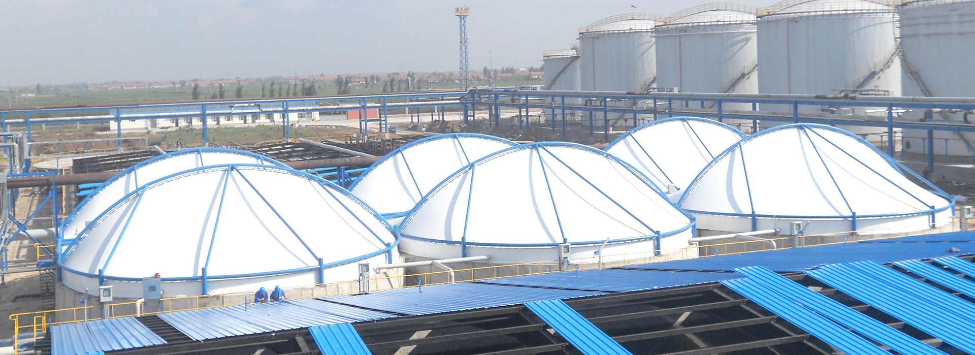 大型池體(如污泥氧化溝、濃縮池、消化池)的氣體收集及污水池處理等是生態環保的一項大工程。膜結構材料特有的大跨度、韌性好、耐腐蝕、使用年限久等性能恰恰滿足,為關愛人民,構建和諧社會,創建優美的生活環境貢獻力量。